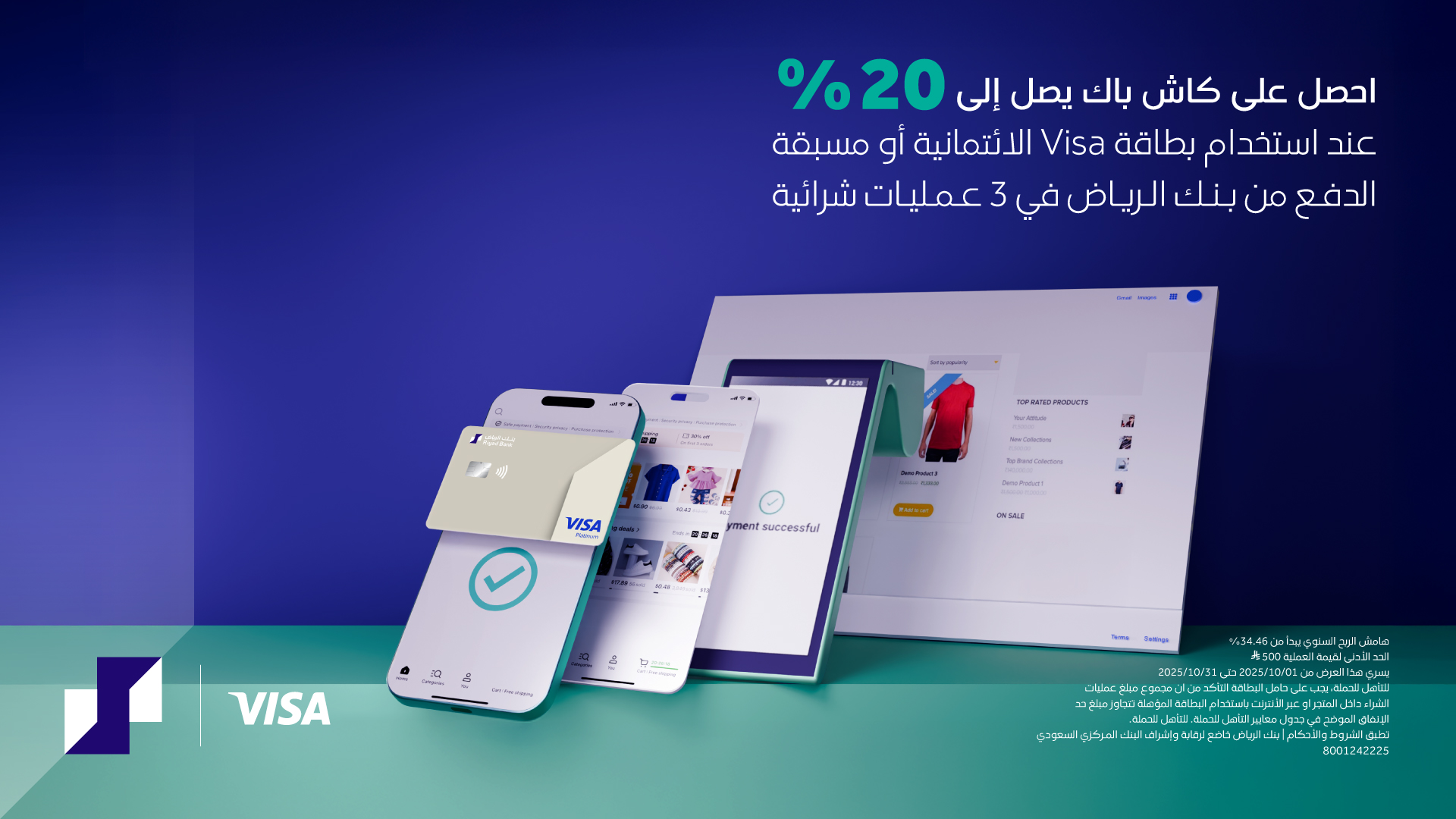 حوّل مشترياتك باستخدام أي من بطاقات بنك الرياض الائتمانية داخل المملكة أو خارجها لمجموعة من الخيارات السهلة والمريحة في خطط السداد.